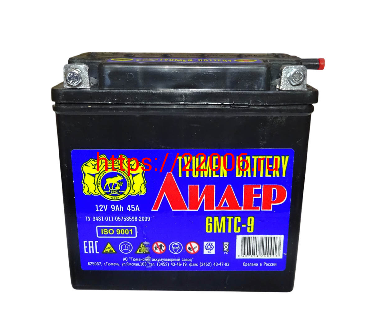 - Аккумулятор 12В 9 А/ч, г.Тюмень Лидер (6МТС-9) под болт(140х75х135) обрат. пол., Кислот. Сухозарядж в Москве недорого