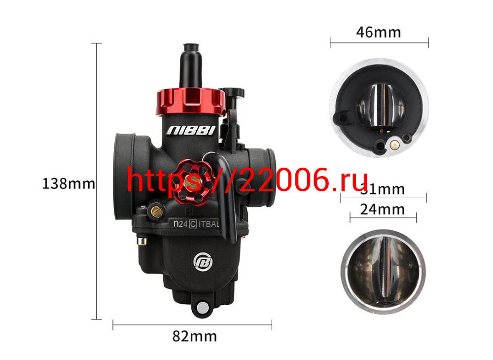 - Карбюратор NIBBI Racing PE24 (YJ), реком.двиг. 50-125 см3 (вход/выход 24 и 46 мм) в Москве недорого