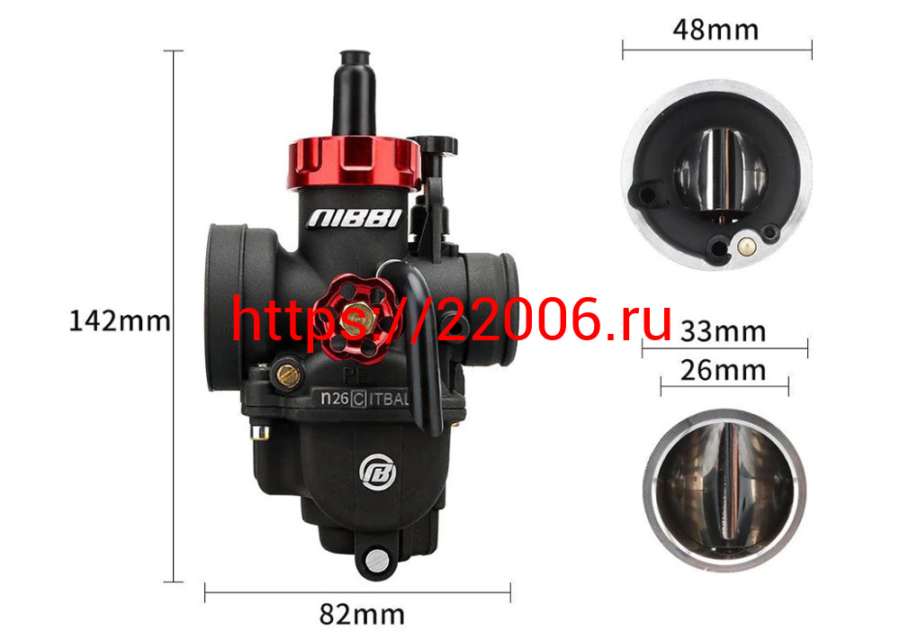 - Карбюратор NIBBI Racing PE26 (YJ), реком.двиг. 140-160 см3 (вход/выход 26 и 48 мм) в Москве недорого