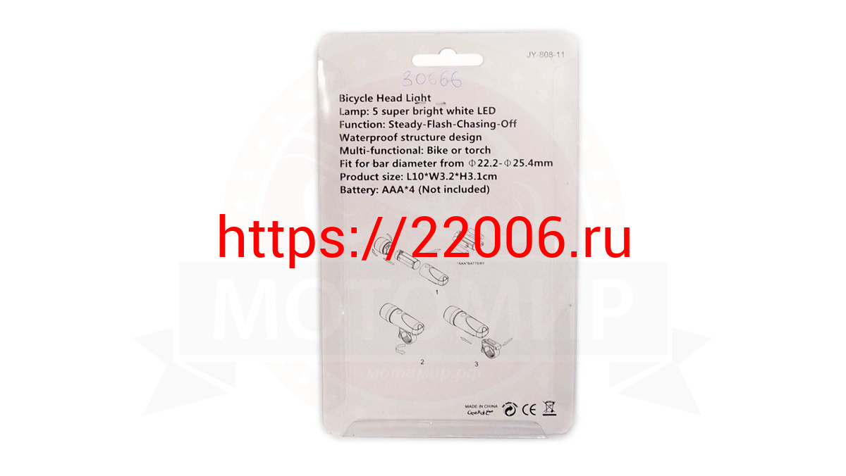 - Фара Вело передняя, 5 диодов, 98x30x69мм, материал ABS (4 батарейки ААА) (EBL 016-1) в Москве недорого