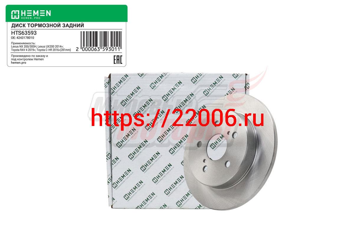 - Диск тормозной задний LEXUS NX200, UX200, TOYOTA С-HR 16-, RAV4 V XA50 18-, диам. 281 (HTS63593) в Москве недорого