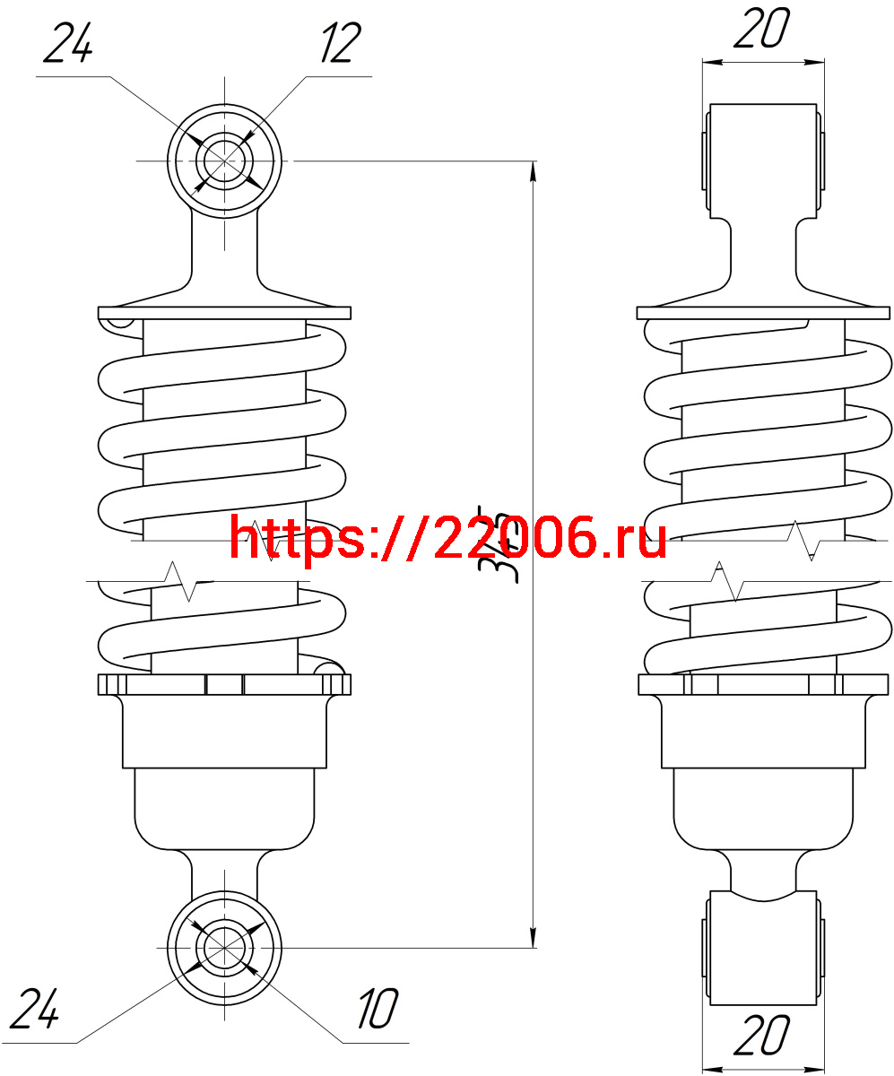 - Амортизатор зад. L-345, D1-24, d1-12, Н1-20, D2-24, d2-10,Н2-20 ЦВЕТНАЯ ПРУЖИНА (без стакана) Alpha в Москве недорого